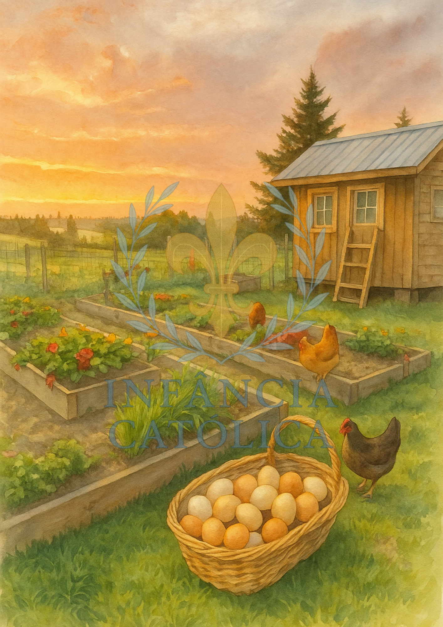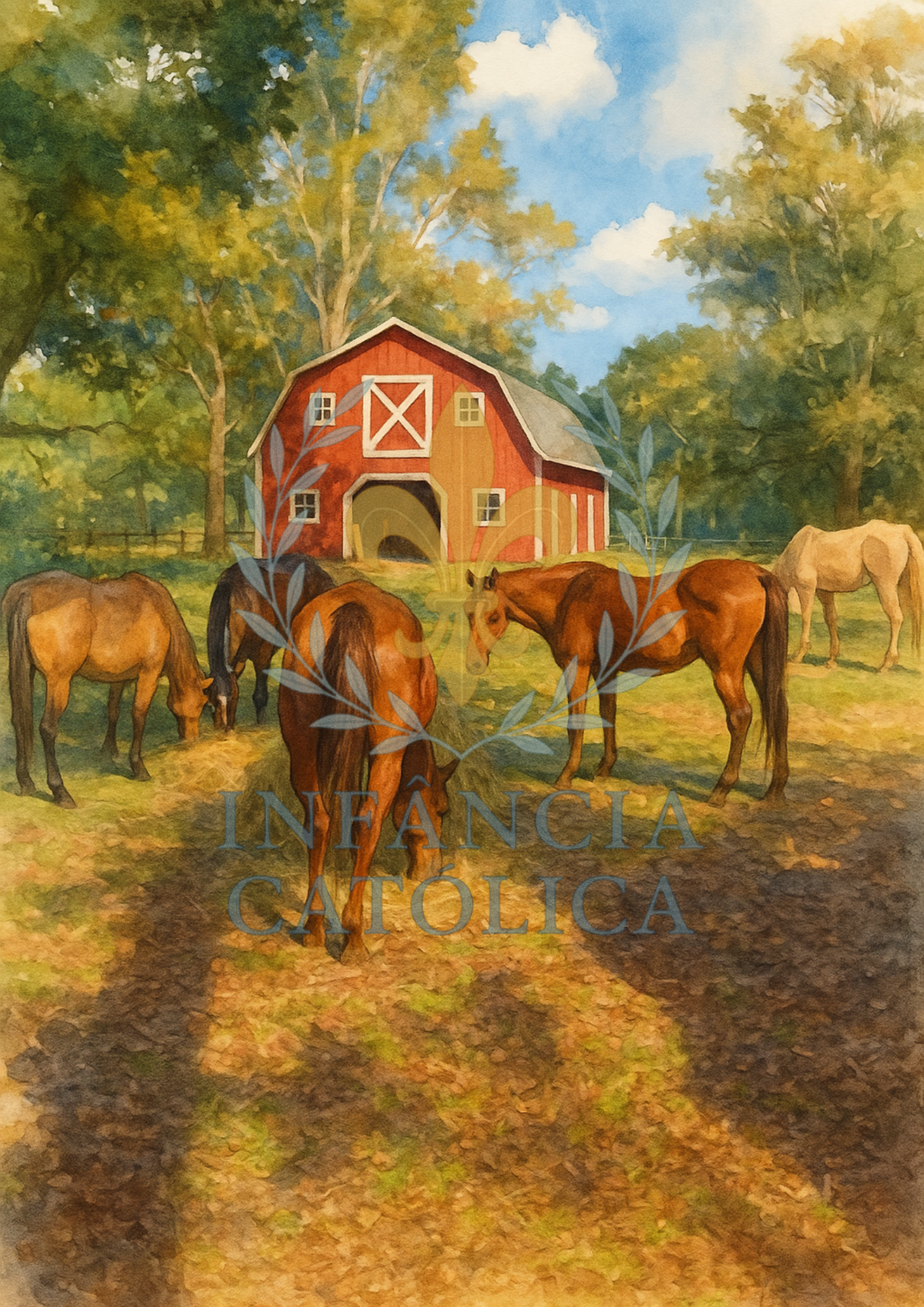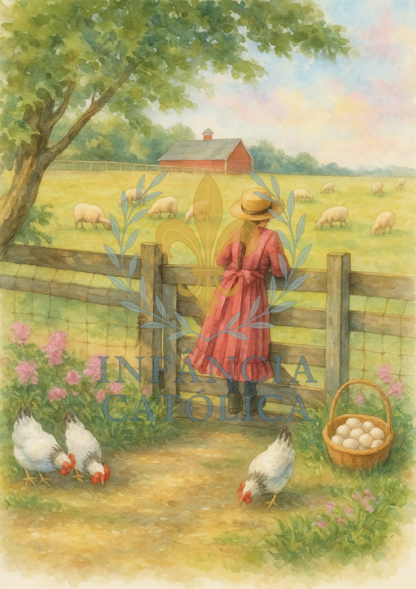 Sem textos ou narrativas, o material convida ao silêncio, à observação e à imaginação, permitindo que a criança contemple cenas da vida no campo, dos animais e do cuidado com a criação, formando o olhar para a ordem, a harmonia e a simplicidade.