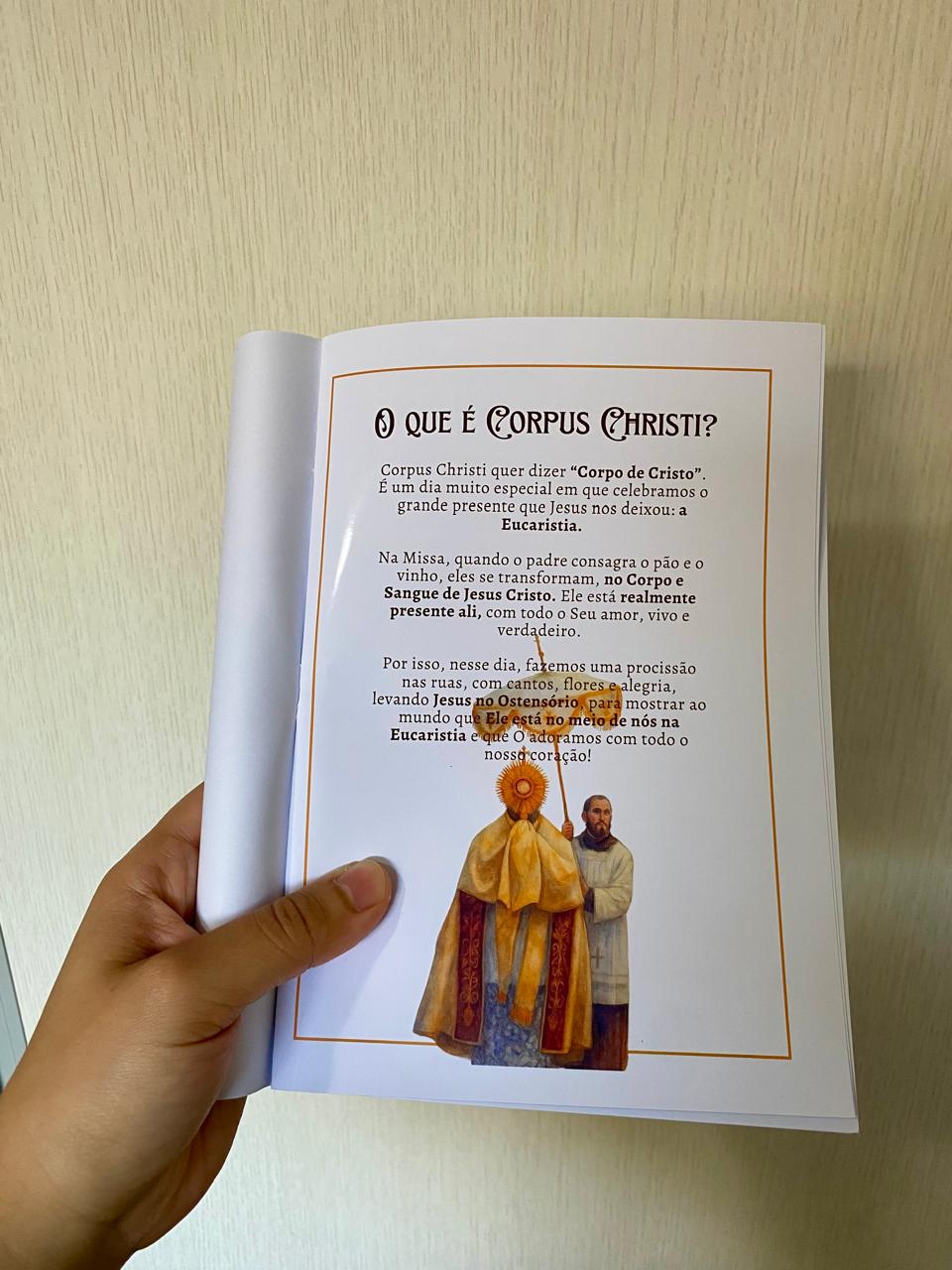 Com linguagem acessível e ilustrações para colorir, o livrinho é um recurso valioso para ajudar os pais a explicarem às crianças o mistério da Eucaristia, o significado da procissão, dos tapetes coloridos e do Santíssimo Sacramento exposto no ostensório.