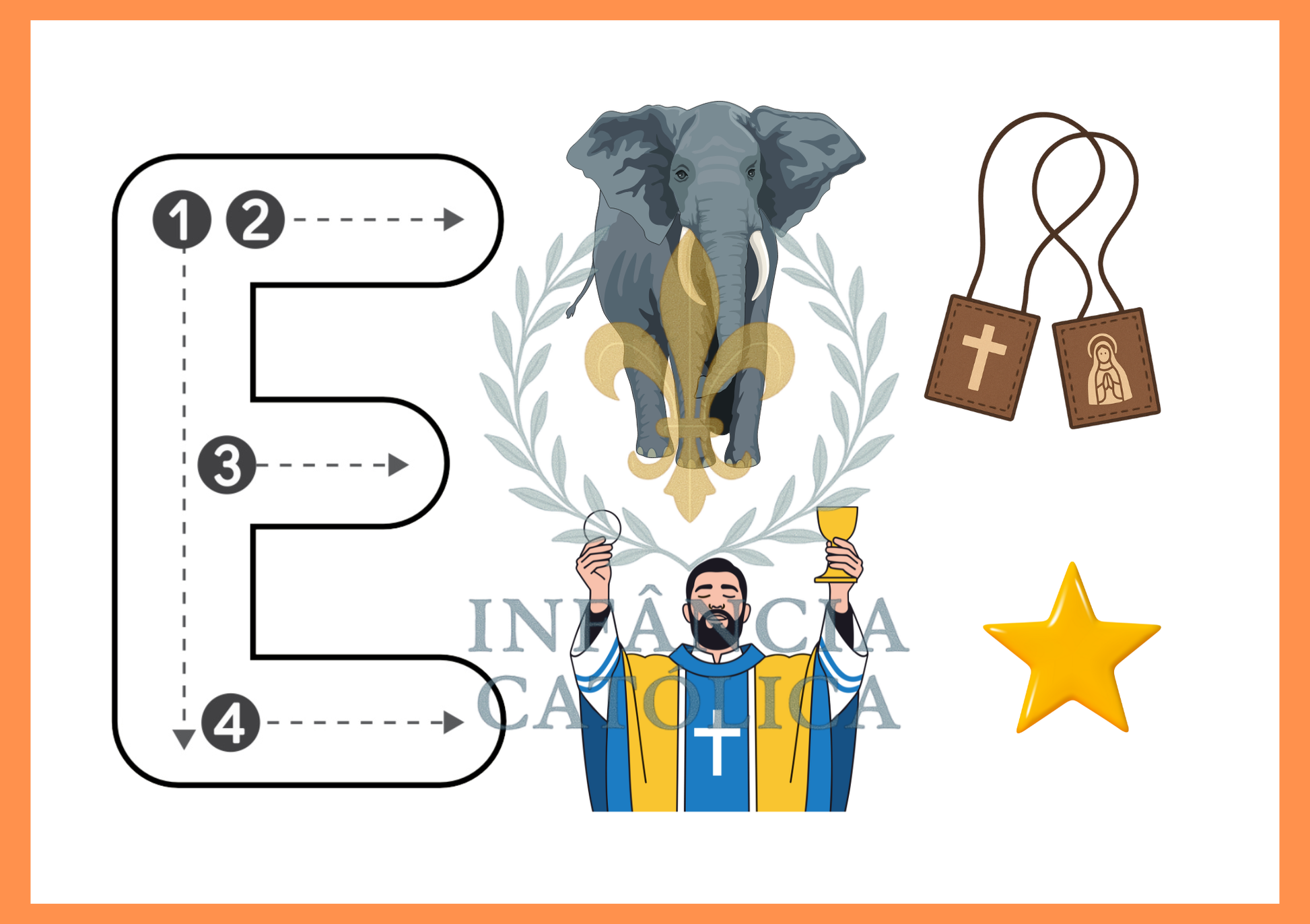 ✅ Ideal para: coordenação motora, preparo para a escrita e formação do imaginário católico